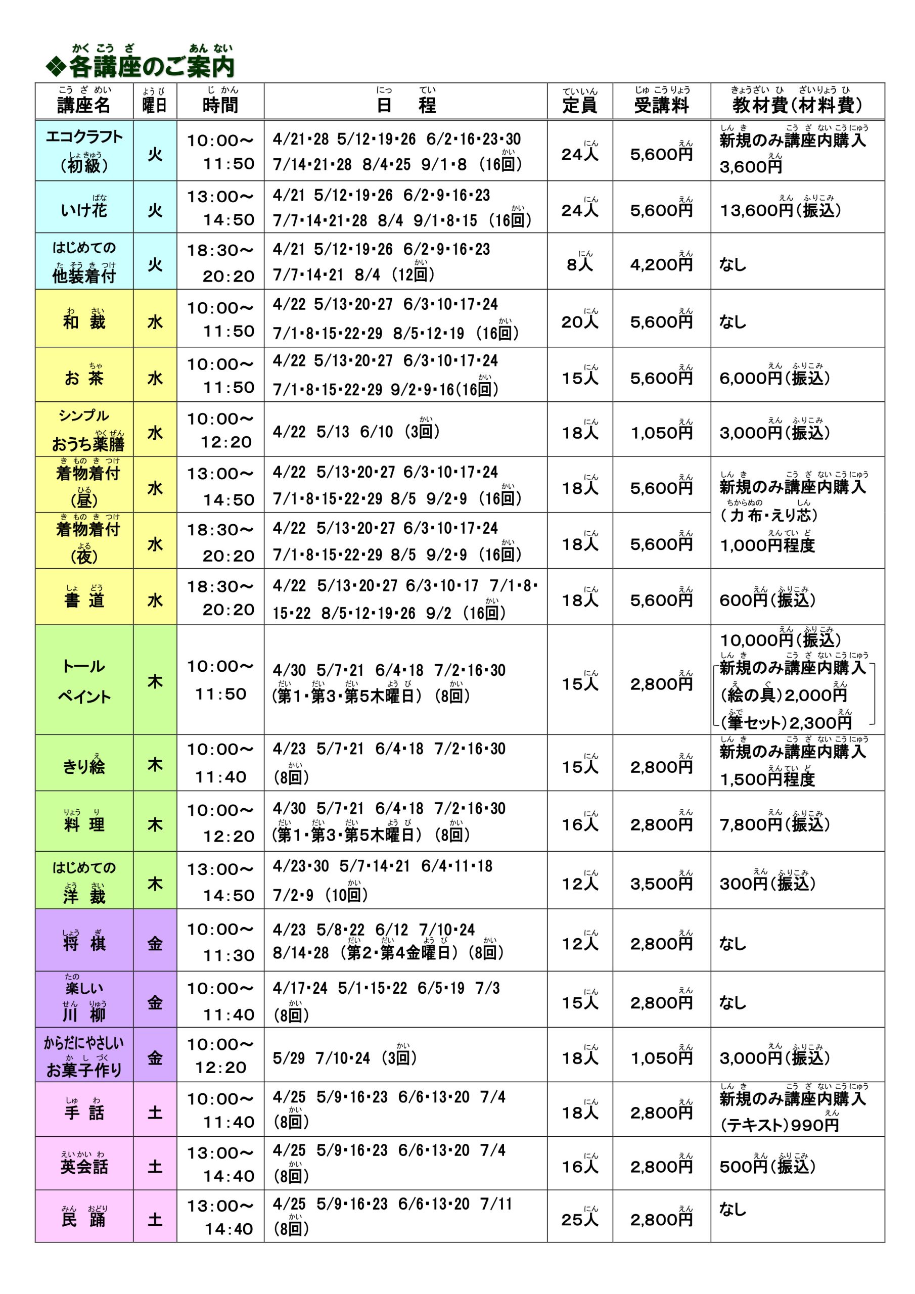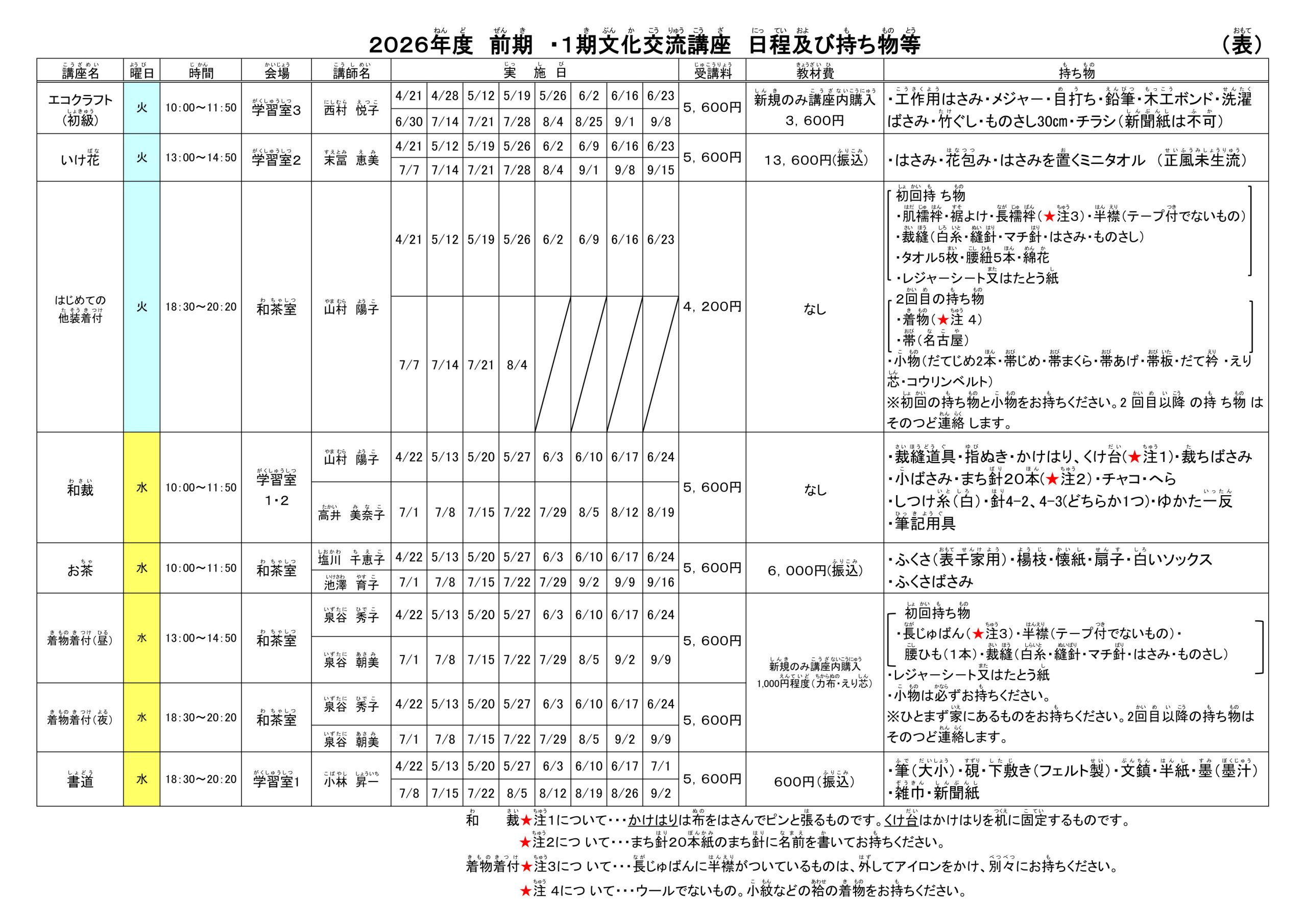 前期 ・1期 文化交流講座