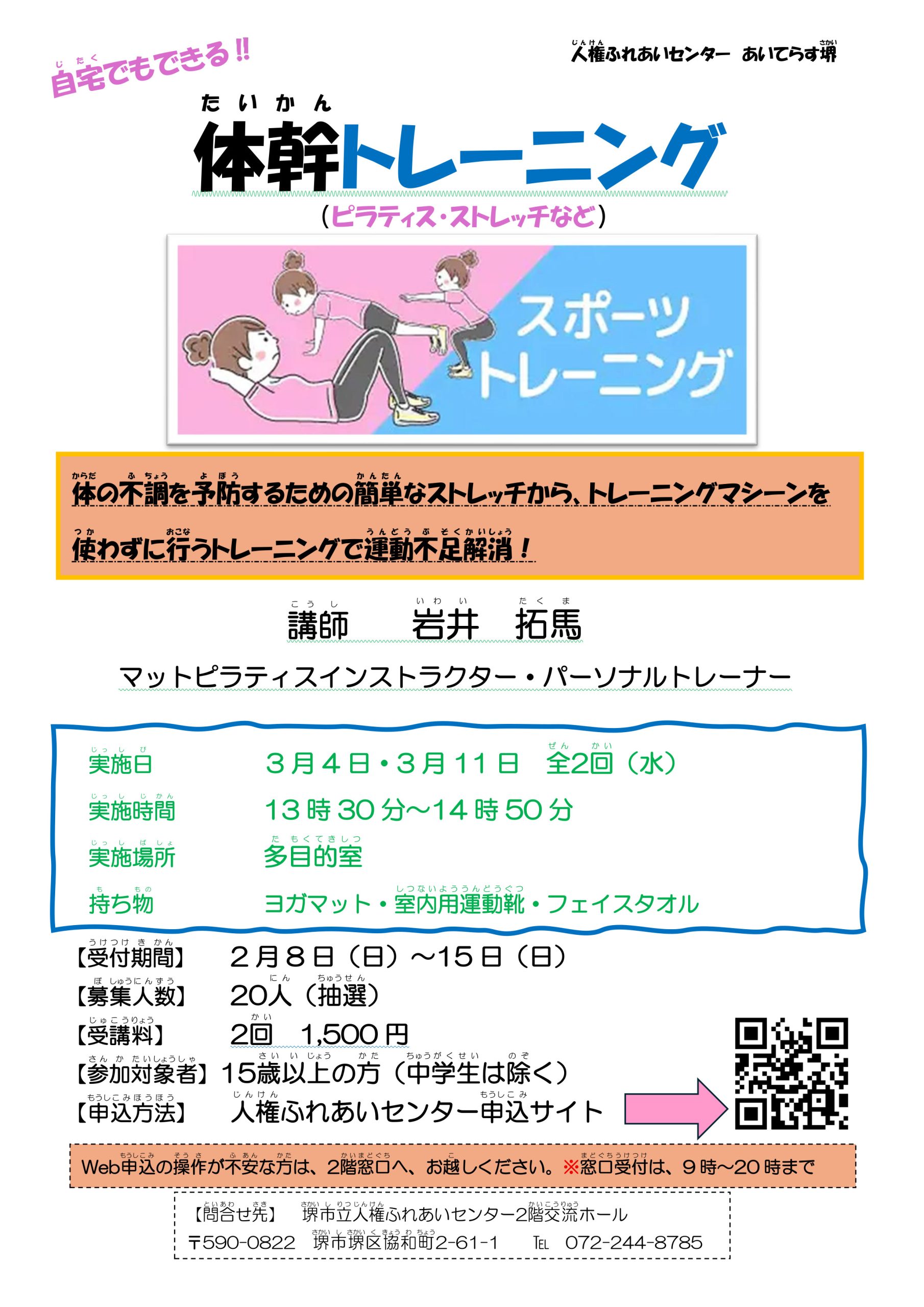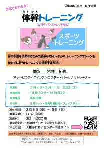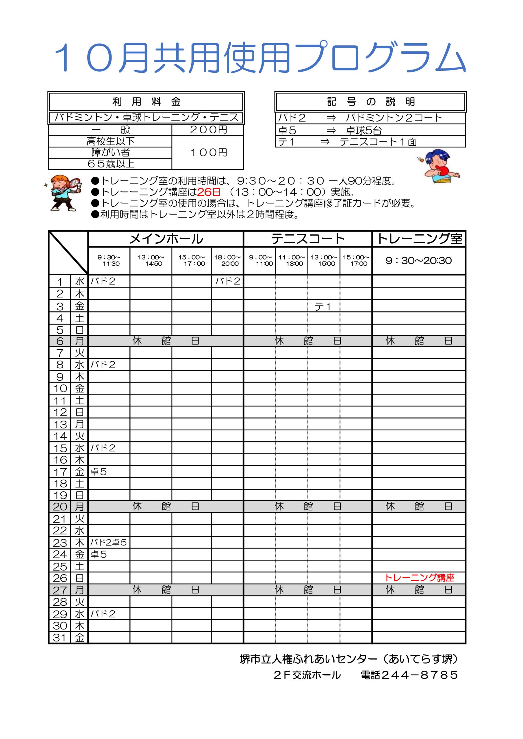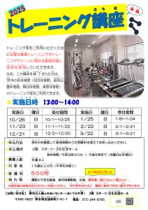 ※トレーニング講座開催時は、トレ-ニング室は使用できません。
