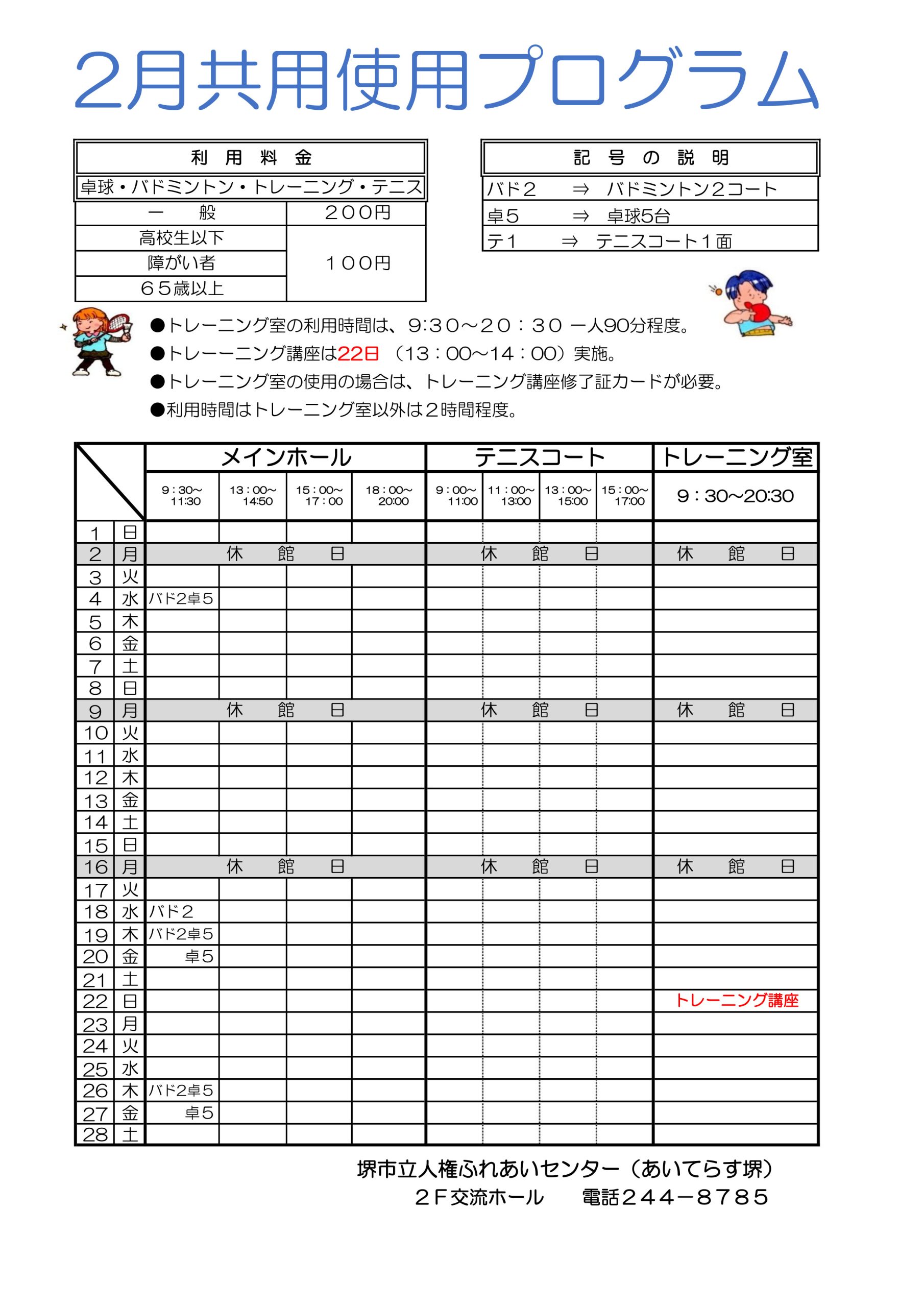 ※トレーニング講座開催時は、トレ-ニング室は使用できません。